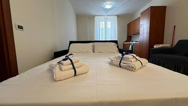 PESCARA CENTRO BILOCALE - Disponibile anche con affitto turistico o di breve periodo. A Pescara centro, IMMEDIATAMENTE DISPONIBILE proponiamo in locazione, Bilocale arredato. (SOLO USO TRANSITORIO - MAX 18 MESI RINNOVABILI - NON IDONEO PER PORTARE LA RESIDENZA), rivolto ad esempio a lavoratori di transito fuori sede con incarico di lavoro su Pescara con contratto da allegare al contratto di affitto o studenti fuori sede. Si compone di: un ingresso, soggiorno-pranzo con angolo cottura (condivano letto) una camera da letto matrimoniale, un disimpegno e un bagno con doccia. L'unità abitativa è dotata di impianto di riscaldamento e raffreddamento autonomo, video citofono, porta blindata, finestre Schuco con doppio vetro per isolamento termico ed acustico, cassaforte e impianto satellitare centralizzato. L'appartamento è completamente arredato, compreso di lavatrice. La palazzina si sviluppa in soli 4 piani servita da ascensore per disabili. La soluzione proposta si compone di: CANONE DI LOCAZIONE € 650/mese + SPESE DI CONDOMINIO € 200/mese dove sono incluse: luce, gas, acqua, riscaldamento, raffreddamento, tassa sui rifiuti e spese condominiali (luci scale, pulizia scale e consumi ascensore) con rendiconto annuale, senza dover provvedere agli allacci. Per qualsiasi informazione o per visionarle ci potete contattare ai nostri recapiti - La presente proposta non costituisce vincolo contrattuale La planimetria proposta resta puramente indicativa. Contattaci per ulteriori informazioni: 392/2427245.